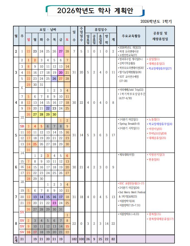 학사 일정은 기상 이변 및 상황에 따라서 변경하여 운영될 수 있습니다.